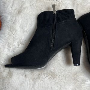 Zipper closure faux suede open toed ankle boot size 7 1/2
