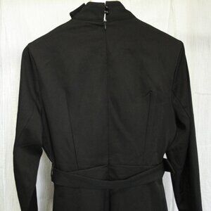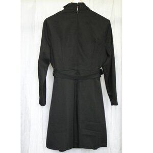 Refined simplicity meets sophisticated design in this black belted midi dress. Featuring a high-neck with a chic button accent, long sleeves, and a fitted waist with a sleek belt, this dress offers a polished look perfect for business meetings or upscale dinners."