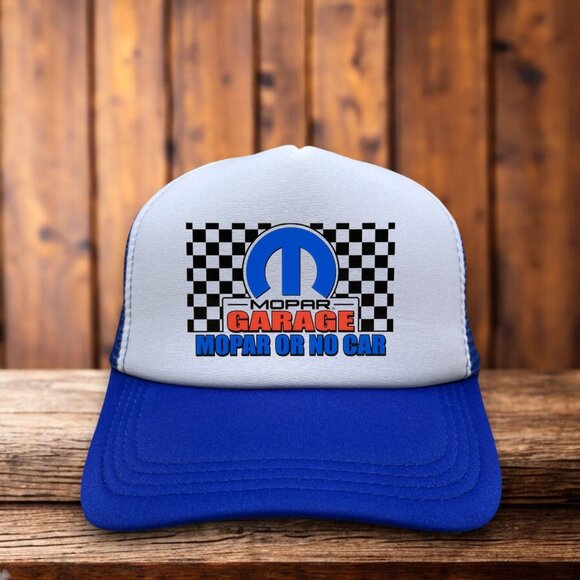 Mopar Garage Performance Mens Trucker Hat Blue Vintage Logo Motorsport Cap