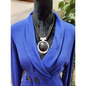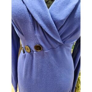 Moqivgi Women's Solid Blue Rayon V-Neck Long Sleeve Knee Length Dress Size Medium.