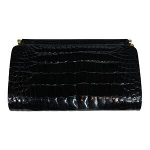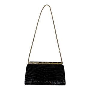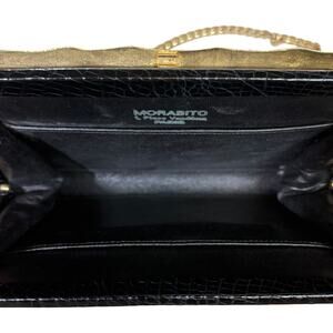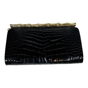 Morabito Vintage Black Crocodile Evening Bag Chain Strap Gold Bamboo