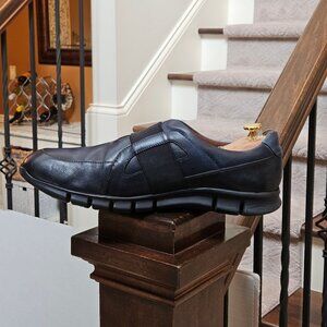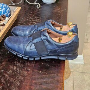 Moral Code Men's Erast Leather Slip-On Sneaker, Blue/Black, Sz 12