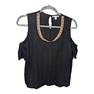 Moral Fiber Black Cold Shoulder with Knitted Detail on Scoop Neck Women's Extra
