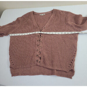 Moral Fiber Pink V-Neck Knit Lace Up Long Sleeve Cardigan Sweater Womens Size XL;