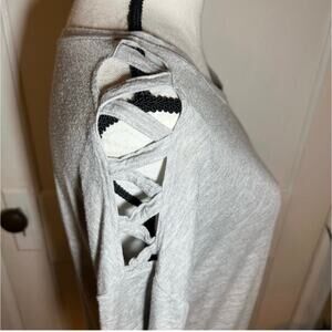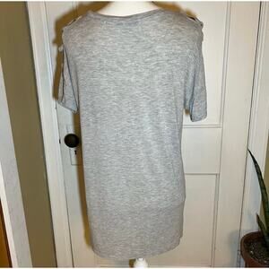 Moral Fiber Cute Gray Short Sleeve Cut Out Scoop Neck T-Shirt Size XL