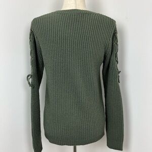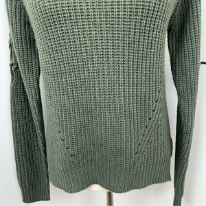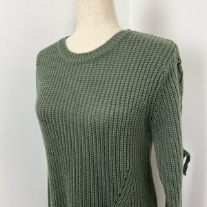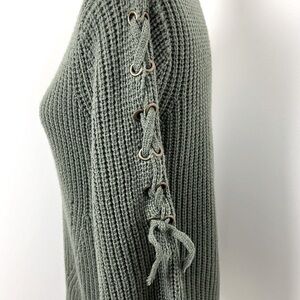 Moral Fiber Green Knit Sweater. Lace-Up Sleeves. Crew Neck. High/Low. Large