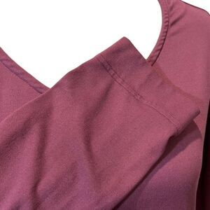 Moral Fiber V-Neck Top with Metal Grommets at Hem Slit in Merlot Size Small. Excellent condition. See photos for details and measurements. edgy, casual, rock, dance, leggings, rock and roll,