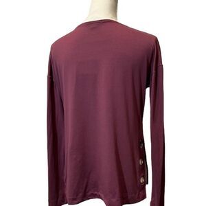 Moral Fiber V-Neck Top with Metal Grommets at Hem Slit in Merlot Size Small