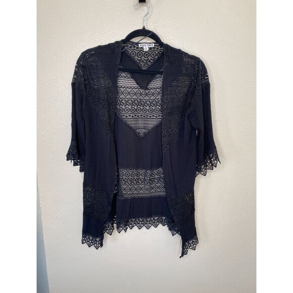 Moral Fiber Womens Black Lace Open-Front Cardigan M 100% Rayon Lightweight