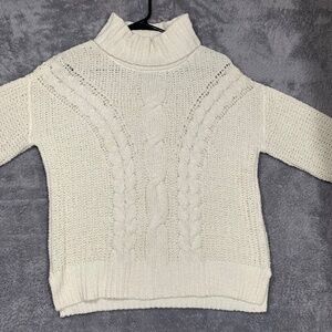 Moral Fiber Women’s Cream Cable Knit Turtleneck Sweater Size M Polyester Chunky