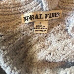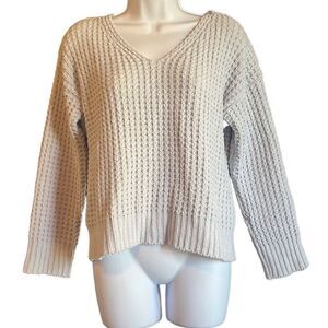 Moral Fiber Womens Large Blue Chunky Knit Lace Up Back Cropped V Neck Sweater