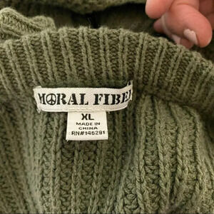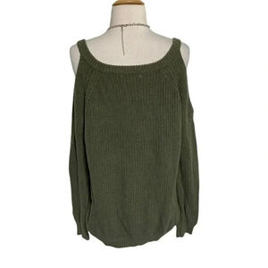 Moral Fiber XL army green ribbed cold shoulder V-neck sweater
