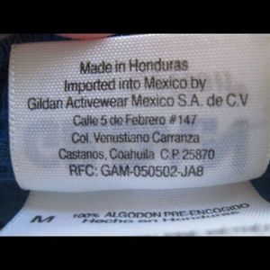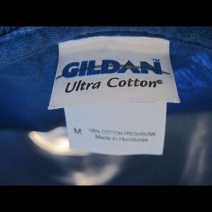 Gildan Ultra 100% Preshrunk Cotton Made in Honduras.