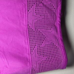 Vibrant purple tee with 'yes girl, yes' graphic. Features mesh details on sleeves and hem.