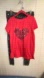 Red top with heart design. Leopard print leggings. Fun and stylish.
