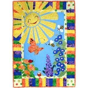 Sun Shinny Day is just so happy! This pattern is mostly applique with the border using traditional quilting techniques. The size of this finished quilt makes it ideal as a crib quilt or a lap quilt. It also looks beautiful hanging on the wall of a baby's room too. We used bright colors in this quilt to give it the happy look we wanted.