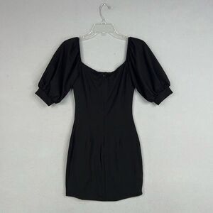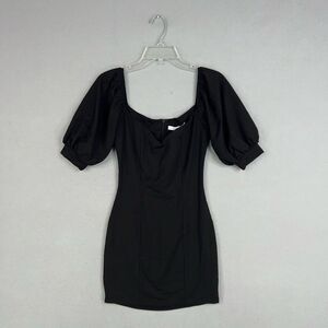 Channel romantic sophistication with this "More To Come" black "Lizzy" puff sleeve mini dress in women's size Small! Its charming design and fitted silhouette make it a perfect choice for an elegant and minimalist evening look.