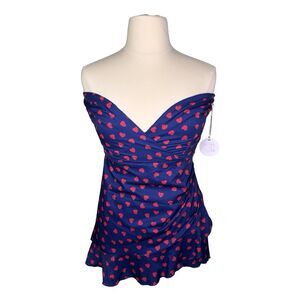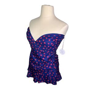 More To Come Marcine Strapless Polka Dot Mini Dress - Size XL Pit - Navy
