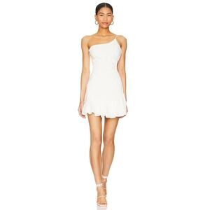 More To Come Nora Asymmetrical Dress White Mini One Shoulder Side Cutout Sz XS