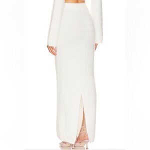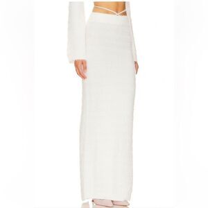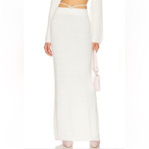 More To Come Octavia Skirt white knit maxi waist tie low rise fuzzy Revolve S