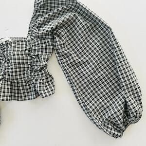 More to Come X Revolve Gingham Crop Top Balloon Sleeve Medium Black White Boho
