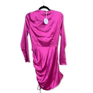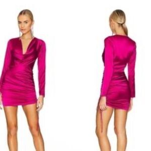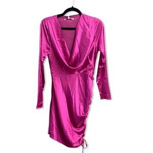 More To Come Brigette Drape Front Dress Pink Satin mini Revolve S