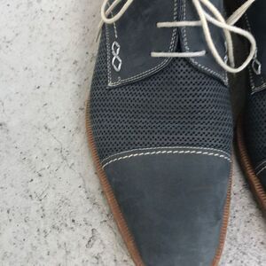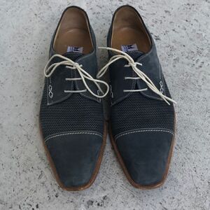 These are fantastic blue gray suede like men’s shoes. They are leather lined and in very good condition. Please check out the pictures