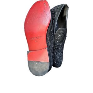 The Moretti Black Label Rhinestone Black Men's Shoes in size 9.5 are stylish and sophisticated loafers perfect for a dressy occasion. Made with high-quality leather and featuring sparkling rhinestone accents, these slip-on shoes offer both comfort and elegance. The solid black color and 90s theme make these shoes versatile for a variety of outfits, while the leather lining and insole provide a luxurious feel. Whether you're looking to make a statement at a formal event or add a touch of glam to your everyday look, these Moretti shoes are sure to impress.