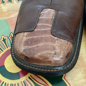 Glossy chocolate brown with crocodile pattern toes and near laces