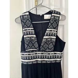 Morgan Carper Anthropologie Black Wide Leg Embroidered Tribal Jumpsuit