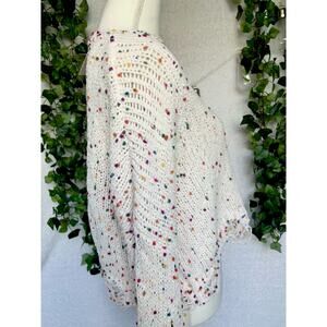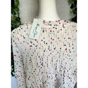 Morgan Claire White & Multicolor Distressed Open Knit Sweater Women's Medium NWT
