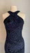 EUC Morgan & Co Black Halter with Blue Glittery Swirl Design, Backless Maxi Dress