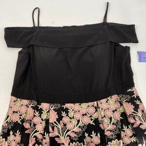 Morgan & Co. Black Pink Embroidered Tulle Off the Shoulder Mini Dress | Size 20W
