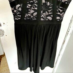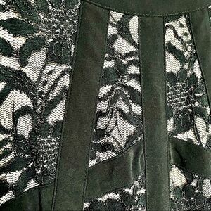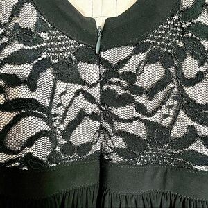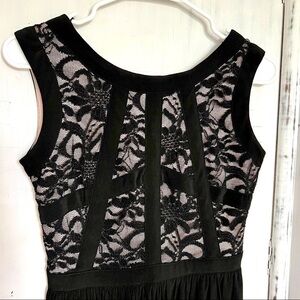 Morgan & Co. Black Swing Dress Lace Bodice with Nude Underlay Pleated Skirt 3/4