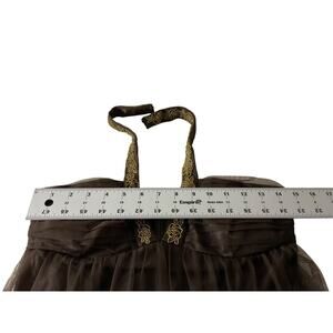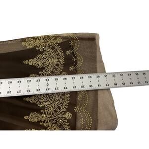 Morgan & Co Brown Strapless Halter Dress Gold Embroidery Tulle Overlay Size 7/8