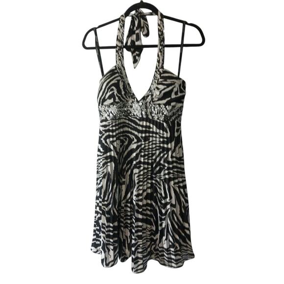 Morgan & Co Dress Zebra Embellished Prom Party Jeweled Medium halter Sequin L