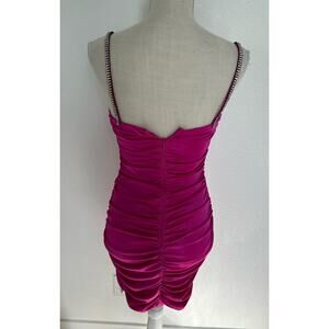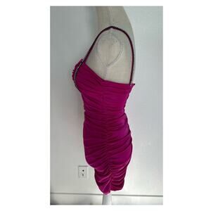 Tags: Barbiecore, Hot Pink, Fuschia, Mini Dress, Ruched, Rhinestone, Cocktail, Party Dress
