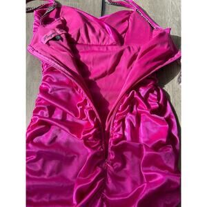 Morgan & Co Hot Pink Barbiecore Rhinestone Embellished Ruched Mini Dress - XS