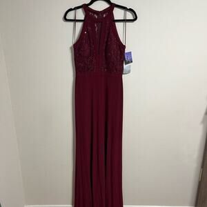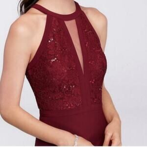 Morgan & Co Merlot Illusion Floor Length Gown size 5/6