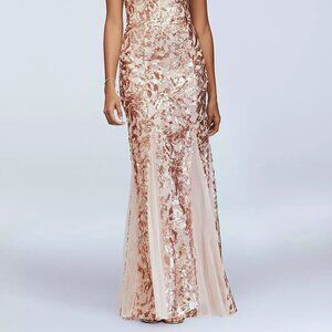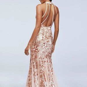 Morgan & Co Rose Gold Sequin High-Neck Strappy Back Gown