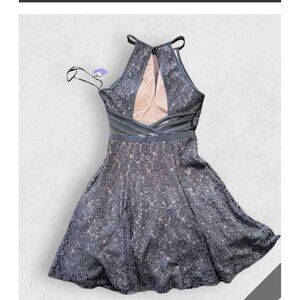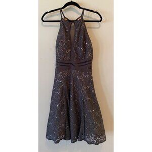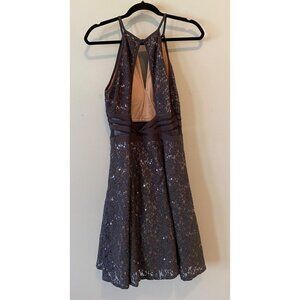 Morgan & Co. Sequin Halter Dress Sheer Insets & Keyhole Back Size 13