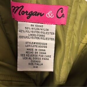 Stand out with this stunning Morgan & Co. strapless cocktail or prom dress! Features a ruched bodice, dramatic tiered ruffle hem, and a beautiful iridescent olive green hue that shifts with the light. Perfect for weddings, homecoming, or a unique evening look. Very y2k! Please note that this is a size 3/4 juniors which is roughly equivalent to a women’s 2 or XS. Please see exact measurements to confirm fit.