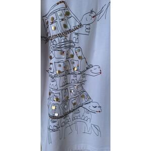 Morgan Cole Turtles and Palm Tree Sequin Beads 3/4 Sleeve White T shirt M Cotton
