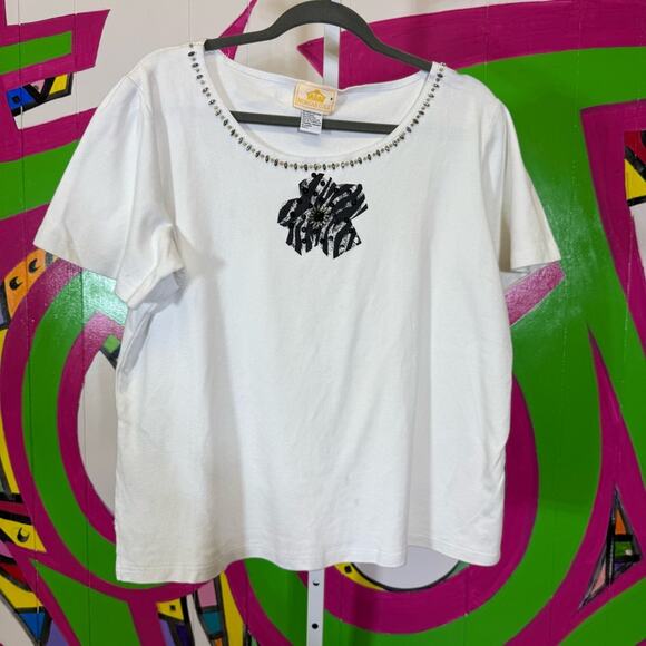 Morgan Cole, White Beaded Embellished Women's Top. Size Large. Good used cond!