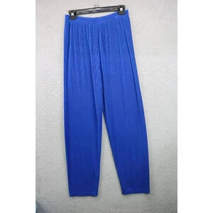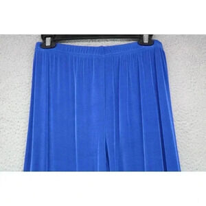 This is a Morgan Cole Women's Cobalt Pantsuit that is a size Medium. It is liquid knit and has sequins on the top. It is a stunning color. The material tag is missing. Laying flat, the top measures: Armpit to armpit-21" and the length is 29.5". The pants have an elastic waist that measures 27" and the Inseam is 29.5". They are in great condition.