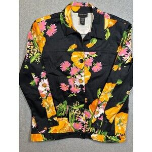 Morgan Cole Women’s Floral Button Up Jacket Black With Floral AOP Size Medium