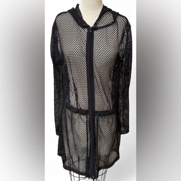 Morgan Cole Zip-Up Black Mesh Swim with Hoodie Cover-Up Size XL
