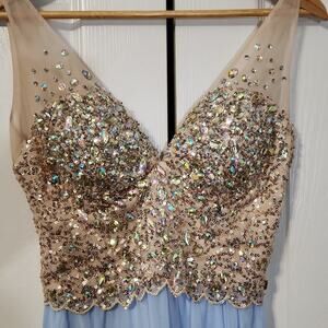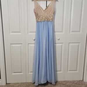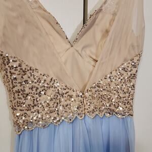 Morgan & Company Women's Blue & Tan Beaded Evening Gown Dress Size 3/4 Prom