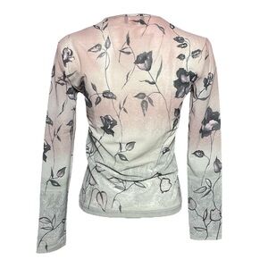 Morgan De Toi Vintage 90s Pink Gray Mesh Long Sleeve Top Crew Neck Size S/M