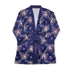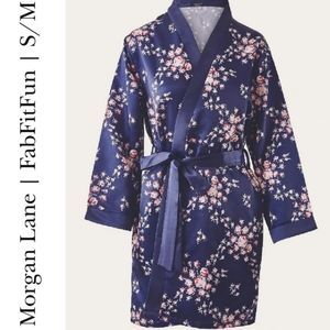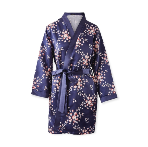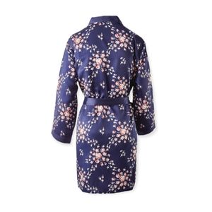 Navy blue floral satin robe from Morgan Lane + FabFitFun collaboration